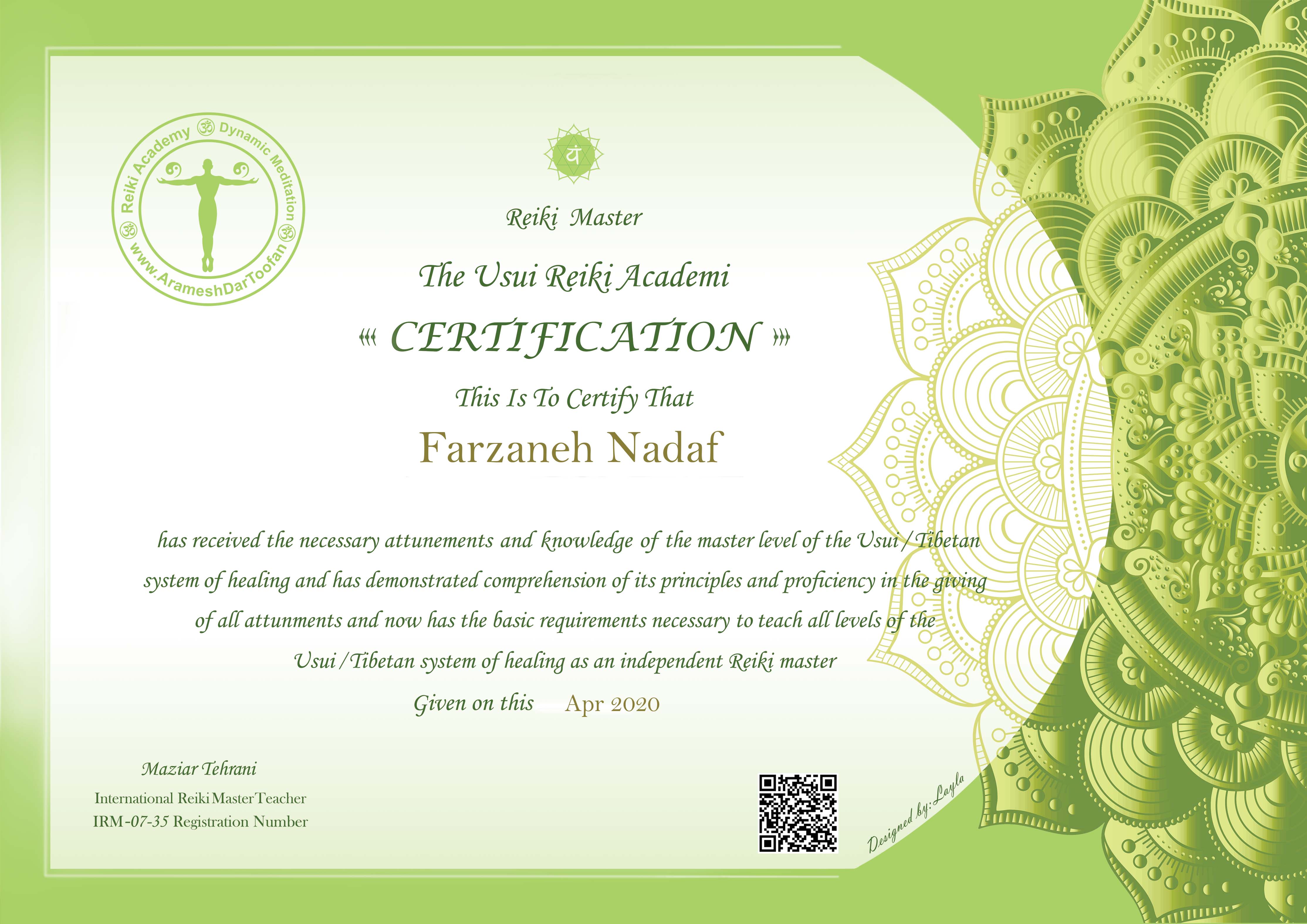 فرزانه نداف معلم ریکی هستم. قبل از آشنایی با ریکی توفیقی شد تا پله پله در مسیر نور و آگاهی قرار گیرم. چنانکه دوره های eft، فنگشویی، پاکسازی کوانتومی، سیلوا و طب آیورودا را در محضر اساتید بنام، خانم ها دکتر فاطمه ریحانی و هما راد گذراندم.