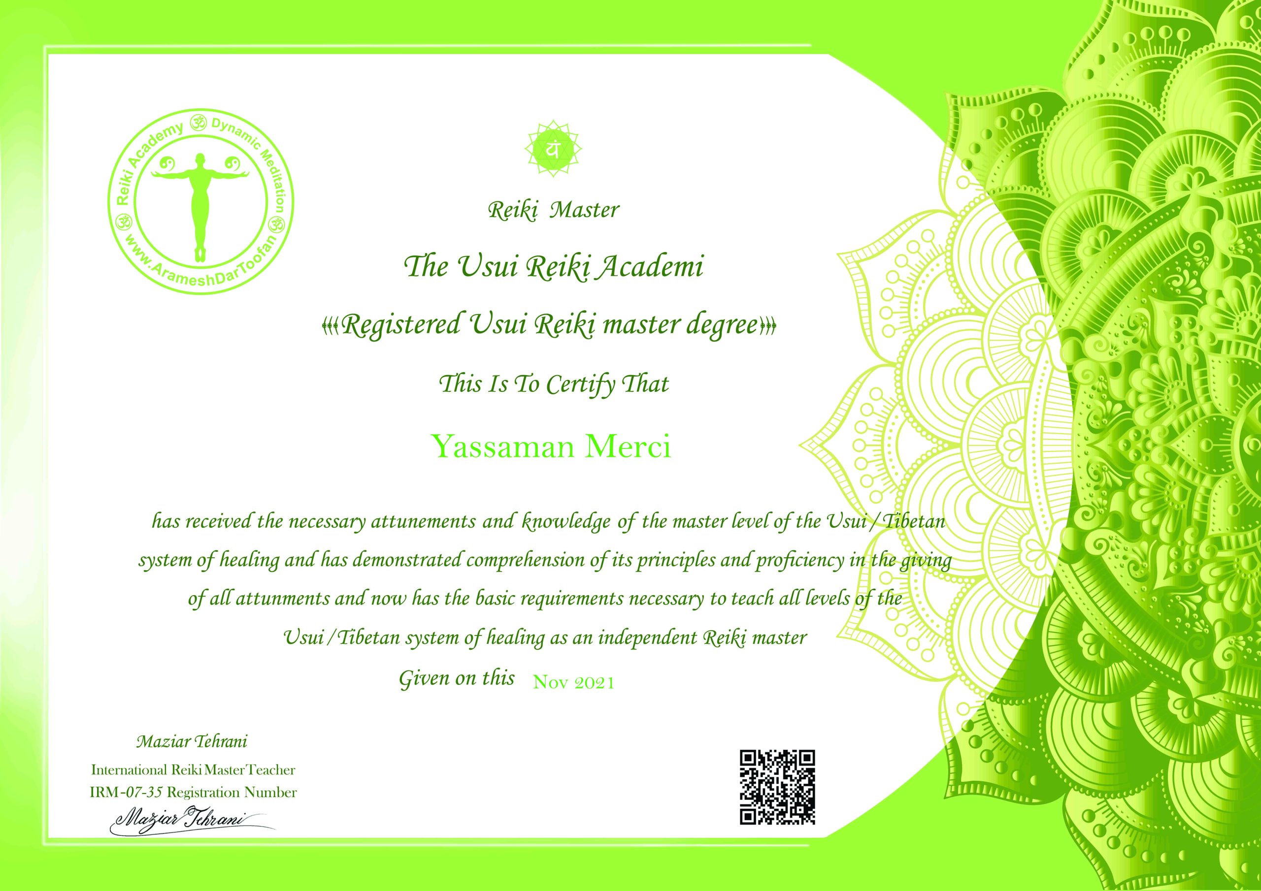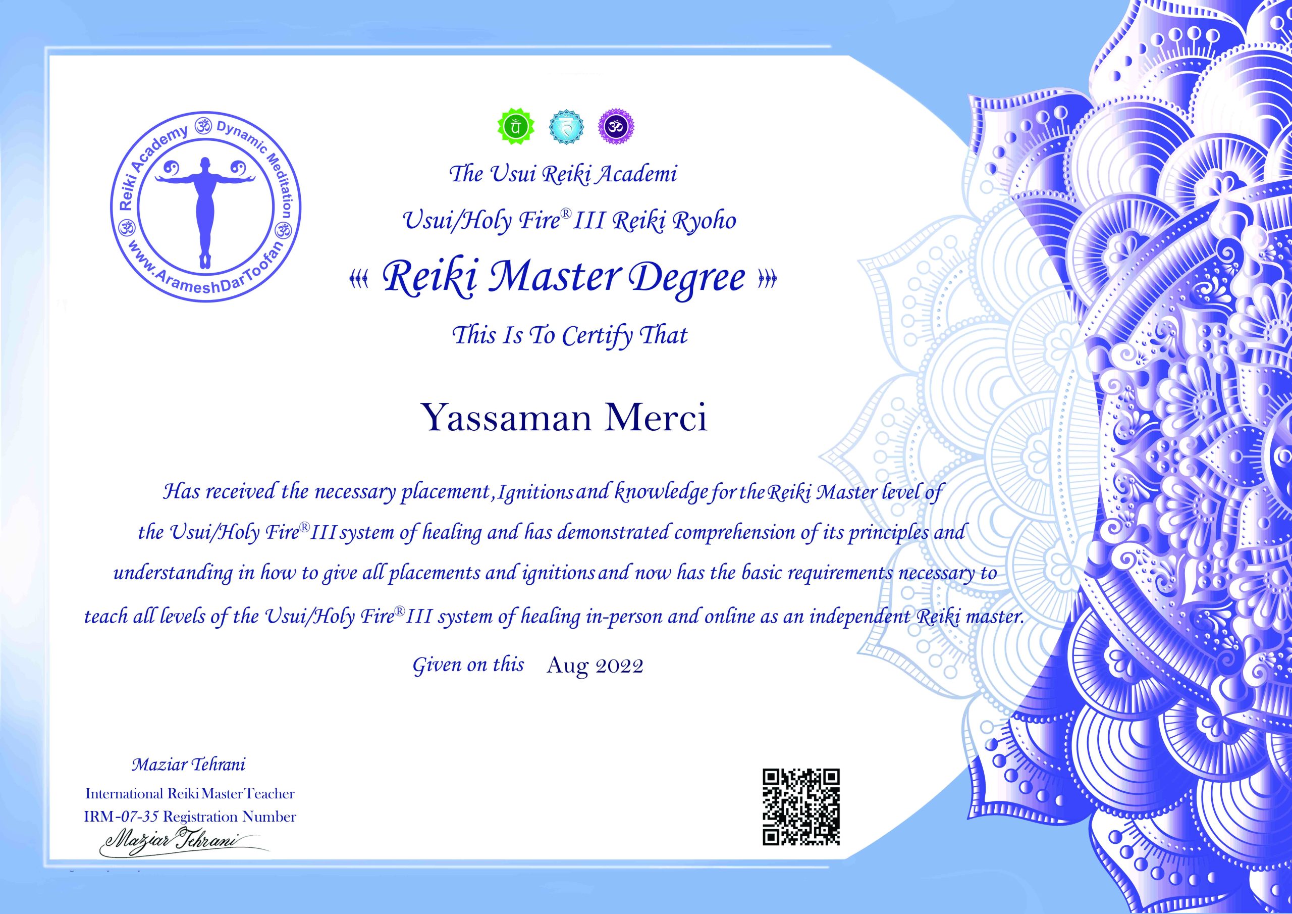 و پس از آن دوره های استادی ریکی اوسویی،ریکی هولی فایر را نزد استاد مازیار تهرانی فرا گرفتم .